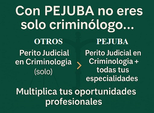 “Ser criminólogo es solo el principio. Con PEJUBA eres perito judicial en todas tus especialidades.”